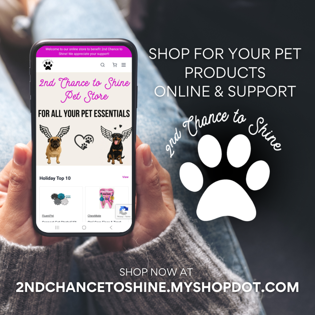 Our online store ships products directly to you, and all proceeds go to 2nd Chance to Shine!